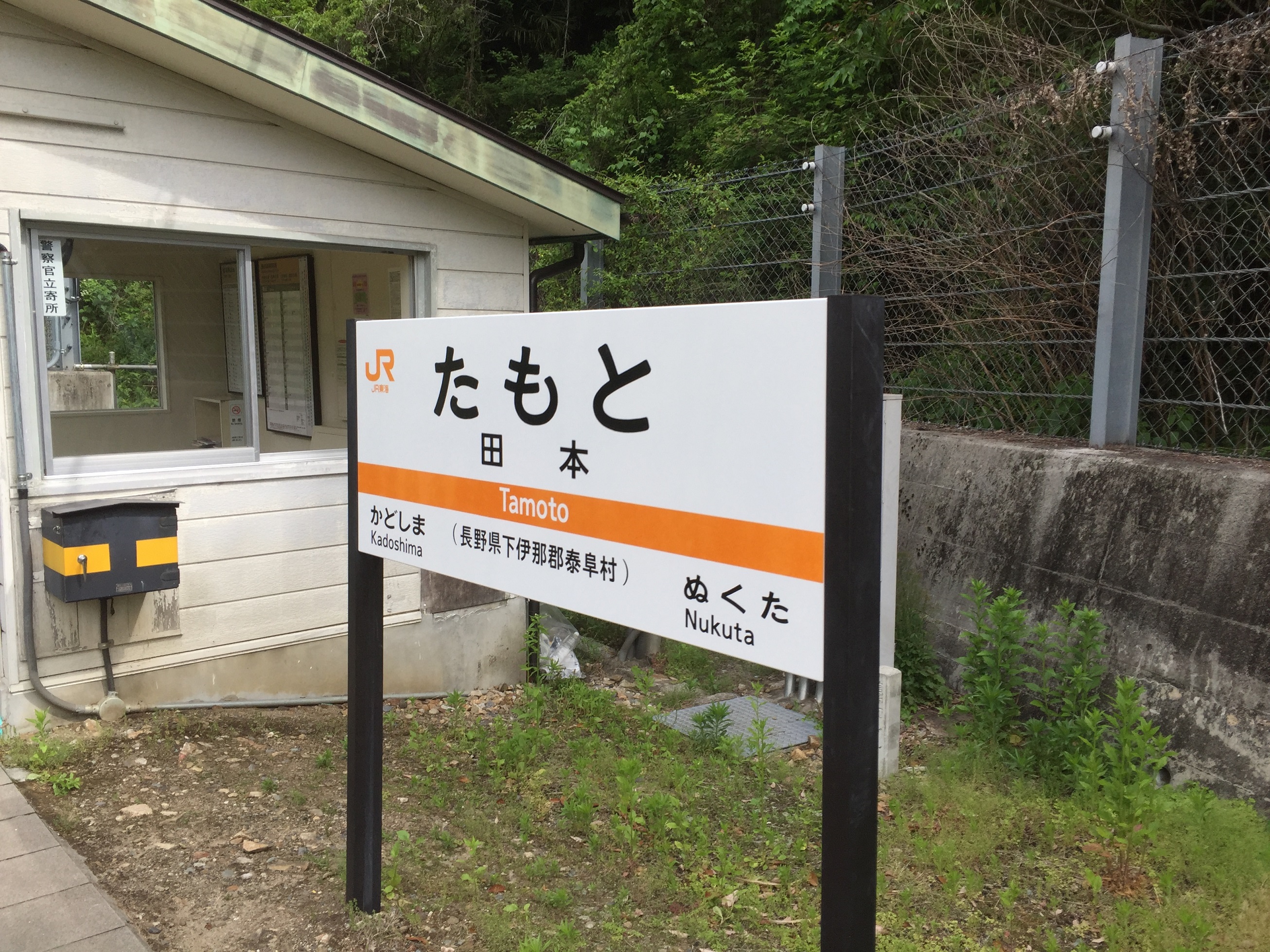 豊橋のホテル。起床時間は5時前。大体いつも通りです。始発電車は6:00発なので、それなりに急いで準備。 こういう旅していると毎回残念なのが朝食サービスが受けられないこと。だから普段は素泊まりなんですが、朝食取ってから出発したいと思ったりもします。5時からでも朝食出してくれるホテルが欲しいです・・・ で、 色々凄いです。 何が凄いか。 1.名古屋と浜松に挟まれた大都市、豊橋駅に二両編成ワンマン列車が止まっている。 2.平日6時なのにガラガラ。 3.誰もいないような山の中を通るのに電車は比較的新しい。 4.気動車ではなく電車。 5.終点の天竜峡は長野県。ここは愛知県。もはや別世界。 とりあえず、ワンマン電車と聞いていたので、小銭を作るために自販機で飲み物を買おう・・・と思いましたが、発車直前だったので止めておきました。 発車10分前くらいについたので、もうちょっとしたら乗ってくるのかな?って思ってたんですが全然乗ってこなくてそのまま発車。大丈夫か?この路線。 そんな思いは案外杞憂に終わり、人家が少なくなってきても場所によっては立客が出るほどの乗車量。まぁ通学時間帯ってのはありますが。なんで存続しているのかはなんとなく察しました。暫くは大丈夫そうですね。 さて、豊橋を出てからしばらくは町が続きます。豊川とか普通に都市ですしね。 しかし、新城駅につくころになるとだんだんローカル色が濃くなり、豊橋からの終着設定もされている長篠あたりまで来ると完全に田舎一色といった感じになります。 まぁ、前日の睡眠不足が祟ってか、半分くらい寝てたんですけどね・・・ 出馬駅とか早瀬駅とかはちゃんと見ておけばよかったと後悔してはいます。一応起きてたはずなんですが・・・ そんなこんなで豊橋をでてから2時間ほどで、浜松市内の中核駅。中部天竜駅に到着。豊橋からの電車は半分くらいここで折り返しますが、ここからが本番。停車時間もあったのでホームの自販機でコーヒーを買って小銭を用意。死角はありません! ここからは人家も少なくなり、いよいよ秘境の雰囲気が漂ってきました。大嵐駅を過ぎてからは西に天竜川が見え、ロケーションも抜群。山の景色の醍醐味を味わうことができます。 そして中部天竜駅からさらに40分。遂に本日最初の目的地に到着します。 はい。断崖絶壁の駅。田本駅です。 私がこういう駅に興味を持つきっかけとなった記事に乗っていた駅の一つ。漸く訪問が叶いました! この駅はご覧の通り。線路の向こうも天竜川にはさまれており、車やバイクで訪れることは不可能と言ってよいでしょう。電車でしか来ることのできない駅です。最高ですね。 さて、駅に到着したのは8時40分ごろ。次の中部天竜行きの電車は9時40分ごろなので一時間ほど滞在できます。勿論駅前一等地の徘徊ですね。 上から見たもと 駅前一等地から橋に向かう道中。なにこれこわい。 びびりながら歩いてたら看板があった。結構歩いたつもりだったのに橋までまだ半分しか歩いてなかったらしく と、思ったらすぐに橋が!帰りに知りましたが、この橋は看板に乗っていた橋ではなかったようです もうちょっと歩く、いや、登ると・・・ ここが看板に書いてあった橋の様です。しばらく進むと温田駅最寄りに出ることができるようですが何時間かかるか分かりません。とりあえず橋は渡ってみます。 高い しっかりしてるけど結構揺れた気がする・・・スキップとか恐ろしくてできない。 反対側に到着! この先を進めば集落にたどり着くかもしれませんがそんな時間はないのでそそくさと元来た道を戻ります。しかしコンクリートの道久しぶりに見たな・・・ 結局10分くらい余って田本駅に戻る。時間が中途半端なので適当に駅ノートに書き込んで電車待ち。定刻通りに電車が到着してほっとしました・・・ 次は今回の旅最大のにして最後の目的地、小和田駅に向かいます。 改札なしに乗車したので当然車掌さんが来る(先ほどの電車も、ワンマンと言っておきながら普通に車掌さんがいました。これをワンマン詐欺と言います)。 行先は?と聞かれるので、小和田までと答える。 聞き返されることなく、410円ですと返答。うん。流石慣れてらっしゃる。 小和田までは戻り道になります。折角だから行きとは別の方面に乗車しました。やはり川側の方が景色良いですね。ここで常にこちら側の席を確保することを決意。 そして中井侍駅・・・ホームと反対側に茶畑があるのですが・・・柵もなにもなく、崖沿いに茶畑がある感じ・・・ここは本当に収穫やっているのだろうかと不安になりました。 そんなこんなで30分ほどで到着。 やってまいりました!本州最大の秘境駅、小和田! この駅、線路と天竜川にはさまれており、橋は当然なし。駅前は廃屋が二軒ある以外は何もない。道路はなくはないものの、車の侵入できるスペースなど皆無。当然車やバイクでの訪問は不可能。先ほどの田本駅と同じく電車でしか訪れることのできない秘境