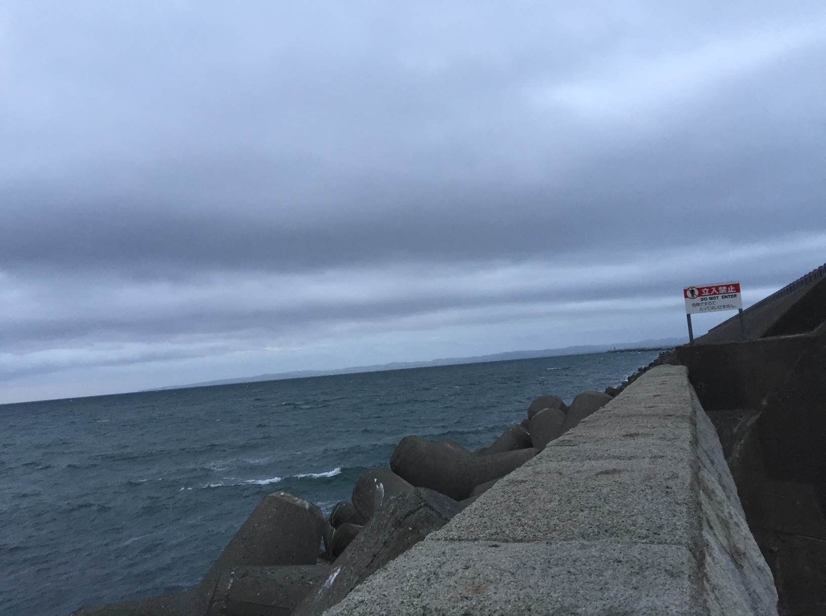 もう一件、よさ気なお店があったものの、高そうで尻込み。名所の防波堤に登り、海未…じゃなかった。海を眺めながら今後の予定を練り直す。