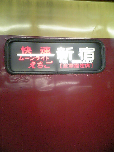 今回は計画通りに旅が出来たと言えなくも無いですが実際そうでもなかったりします。一番の障害は那須塩原駅からのバスの少なさ。今回の旅ではいるか様の元で3日くらいご厄介になったのですが、駅からバスで30分という立地条件であるにもかかわらず、バスが早々に終了してしまうのです。まぁ、詳しくはまた後で。 0日目 この日は旅の準備ですね。いるかさんと新潟で合流し、新潟市内で必要物資を買いあさる。それだけですね。わざわざ特筆すべき点が無いような気もします。なら書くなって話ですよね?すみません・・・ そんなわけで臨時列車に格下げされるムーンライトえちごに乗車します。 ↓これ 新宿まで行く予定でしたが、時刻表と到着予定時間を組み合わせて審議した結果、大宮駅で待機し、そこから快速で横浜まで行くのが一番良いという結論に至り、大宮で降りることになりましたとさ。 一日目 そんなわけで大宮駅です 一応上のほう、ローマ字でomiyastationと書いてあるんですが・・・何書いてあるか分かりませんよね?うちの携帯がご迷惑おかけして申し訳ないです・・・デジカメあればもっとマシなの撮れるんでしょうか? ま、それはともかく、予想に反して駅内に待合室が見当たらなかったので近くの24時間営業のマックで時間潰すことにしました。新商品のホットドッグみたいなのが地味に旨かった気がします。220円(?)は高かったですけど・・・ ま、そうしてそのまま横浜。そして白楽まで向かいます。流石に眠く、車内では爆睡ww結構空いてたし良いよね? 無事にstarとも合流でき、彼のアパートで時間潰した後、築地へ向かいました。勿論飯を食いに。 今回行ってきたところは、何十種類もの具材を組み合わせることの出来るという店。この前の例大祭のときに行きたかったんですが、14時には閉店してしまうために行くことができませんでした・・・しかし今回は特に用も無かったため閉店時刻前に来店など容易いこと。そんなわけで直行したわけです。出るのが遅かったために閉店一時間前くらいの到着になってしまいましたが・・・ それでも凄まじい行列が・・・ 平日なのに・・・ 結局食えたんですけどねw流石に旨かったです。ネギトロが旨いってstarが言ってた。 築地の写真は残念ながら無かったりします。店内写真禁止だったってのもありますが・・・ そんなこんなで飯を食った後、みんな大好き・・・かどうかは知りませんがそんな感じの街、秋葉原へ・・・ 適当にヴァイスのシングルカード漁ってました。今回の目玉は"神話の英雄"バーサーカー。レベル2で攻撃力9500、ソウル2の特殊アンコール持ちという凄まじい逸材です。コレに加えて別のバーサーカーも購入。男だらけのデッキが更に強化されましたとさw あとはホワキャンで不夜城レッドを購入w人生の中でもトップクラスに無駄な買い物でしたwww 後は上野から宇都宮に向かい、乗り換えて那須塩原へ向かうだけ・・・だったのですが、ここで問題が発生。 ぎりぎりバスの時間に間に合う快速電車がホームに来ない・・・不安になって電光掲示板を見ると、その電車の案内が無い!どういうことなの? どうやらホームを間違えてたよう。仕方なく普通電車で那須塩原へ・・・ 駅に着くと案の定バスは終わってました。仕方ないのでタクシーでアパートまで。2900円ほどかかってしまいました・・・バスなら3人で600円なのに・・・ そんな感じで最後の最後で大失態を演じる羽目に・・・今後ホームは間違えないようにしたいです。はい。 こんな感じで長い一日は終わりを告げました。疲れてきたんでここで一区切りといたしましょう。