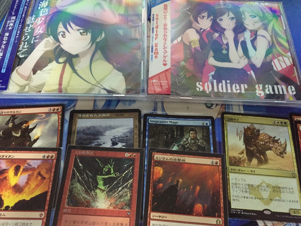 ごめんなさい強がりました金欠の私にはちょっとだけでもなんでもなかったです まぁ、高いのは実質三枚。一番は三角州。 ほら、三角州って、再録前は一枚1万軽く超えてたじゃないですか。それが今は5000円切ってるんですよね。再録万歳。 効果は再録分も全く同じだけれど、やはりこっちの三角州も一枚くらい持っておきたかったところだったんですよ。 しっかし赤いカード多いな。 あとは、そうね。ソルゲと海色少女に魅せられて。これね。 ソルゲの方は買う予定なかったのですが、勇気のReason聞きたかったのでね。仕方ない。 海色少女は今まで持ってなかったのが寧ろおかしかった。あれだけ推してるのに。 まぁ一曲を除いて過去分のソロ曲なのに2500ってのが躊躇ってた原因ですよね。うん。 ドラマパートもあるっぽいけど、百合男子見習いとしては聞きたいような、聞きたくないような複雑な心境。 何はともあれ、iphoneの曲のラインナップが増えるのは喜ばしいことですね。最近同じ曲のループで辛くなってきたので・・・ そんな感じで近況報告?でした。ではでは~
